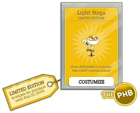 But from the darkness of Poptropica a bright light shines. A small flicker of hope for the people of the land. Dressed in white clothing embroided with pure gold. The Light Ninja steps out to share his treasured outfit.