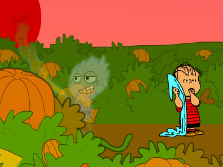 I'm roasting this pumpkin so he'll never see the Great Pumpkin...