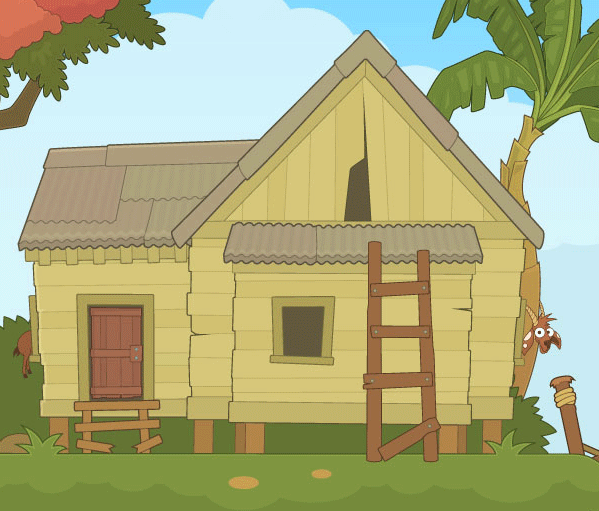 On the Creator’s Blog post the Goat’s rear end is sticking out of the window at the other side of the shack.