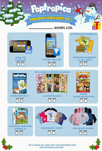 If that’s not right up your alley, maybe you’ll find something else that catches your eye on the Poptropica Shop’s printable holiday wishlist for 2013. For a full list of Poptropica products, check out the PHB article Merchandise: A Guide to Poptropica Shopping!