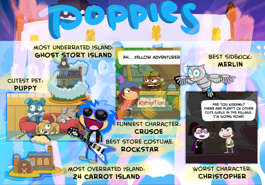 It’s Sporty Boa here to recap what’s been another memorable Poppies awards show and PHB birthday party. The Poppies are our annual community awards event, where we celebrate Poptropica, the PHB, and the community as a whole. We thank all who nominated, voted, and celebrated with us! ๐Ÿฅณ