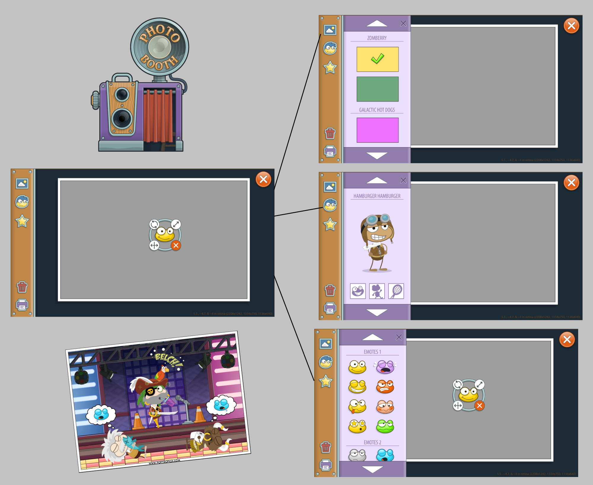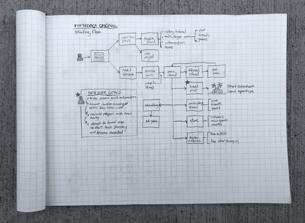 Greenwall has also contributed to a whole host of Poptropica’s main assets like the old friends page, the photo booth, island backgrounds, and too many other things to list! He took part in the design process from beginning to end — starting with the wireframes and flows all the way to the final product.