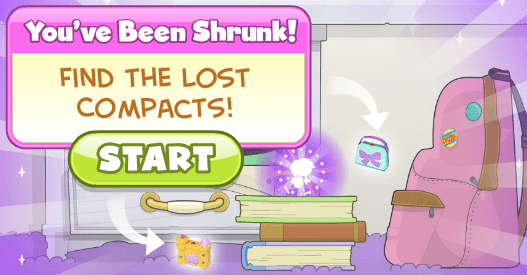Get ready for a major Shrink Ray Island flashback because things are about to get big. It’s time to shrink! The object is simple: find all ten of the compacts in the allotted time of three minutes.