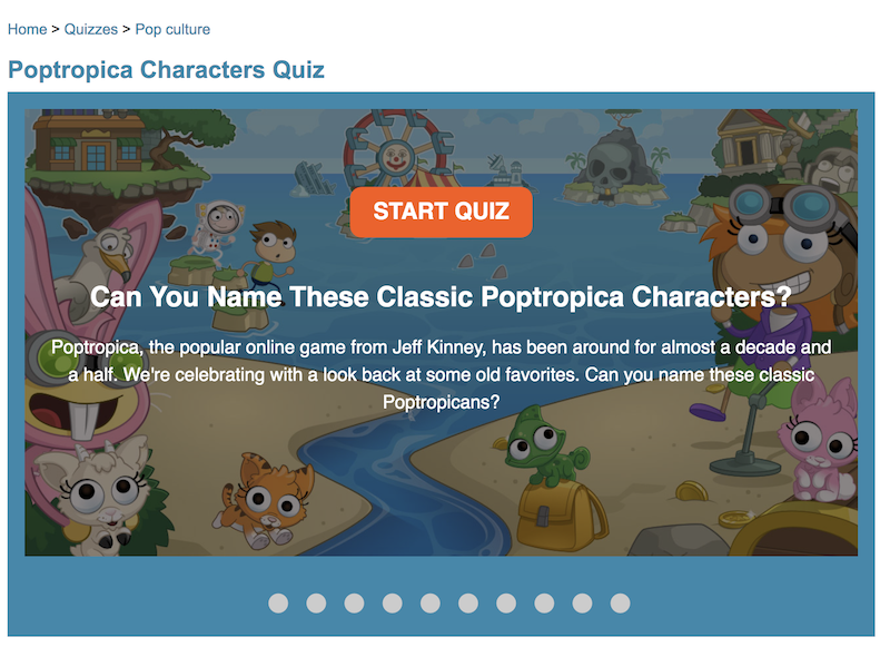 In other news, as you’re moving about Poptropica, you may notice a new sidebar ad from Infoplease which links to a Pop quiz of Pop characters! It’s not clear if the Pop Creators made this or if they’re just linking to anonymous fan-made content, but either way, it’s a fun little game that tests if you can name 10 classic Poptropica characters. Play it here ยป