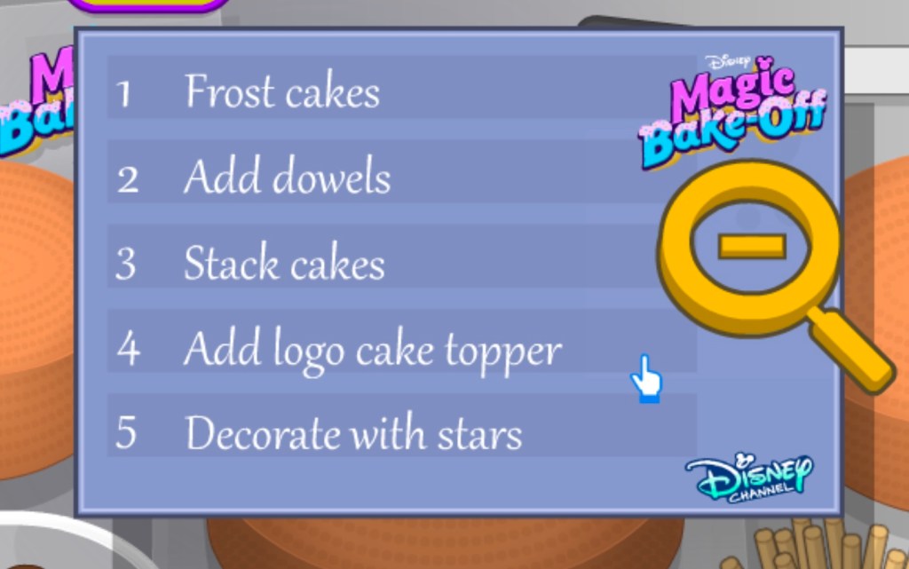 Let’s get baking! The instructions for round one will pop-up. Follow the steps, and soon the cake will be ready to bake in the oven.
