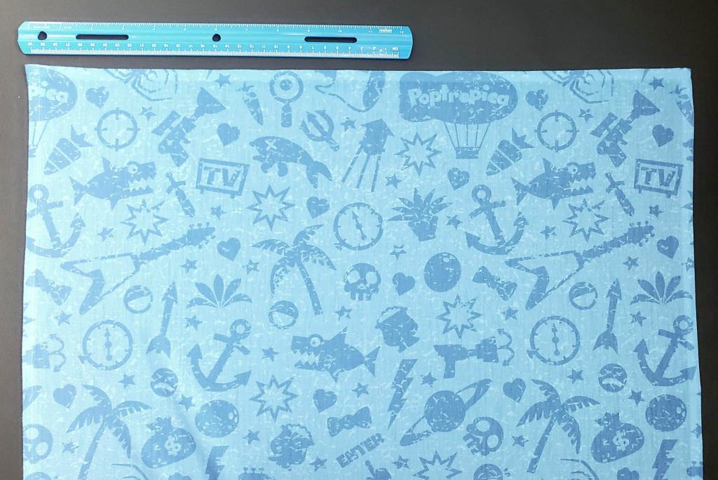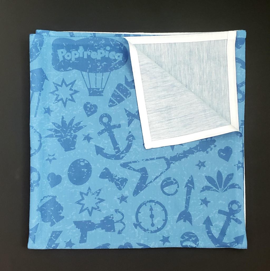The product is available in two sizes: kids/small (18″ x 18″) and adult/large (22″ x 22″). Both options feature the classic blue Poptropica throw pattern. It costs US$18.95 and is made of “100% spun polyester,” making it really lightweight and breathable. The material is pretty smooth and reminds me a lot of a cotton bedsheet.