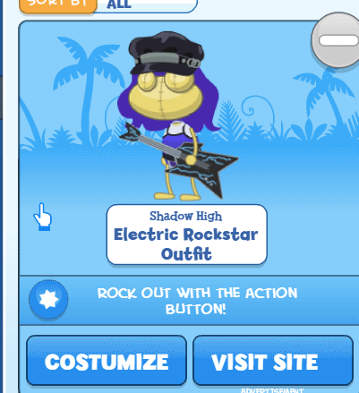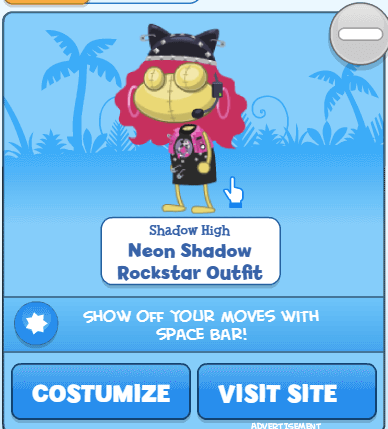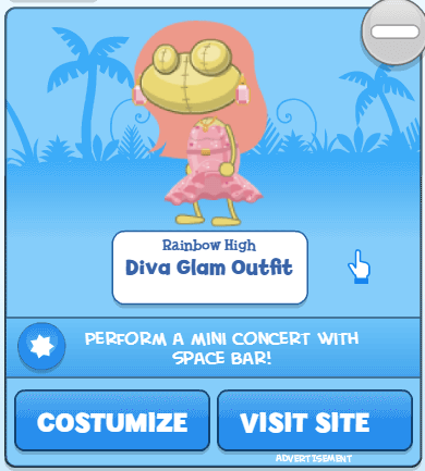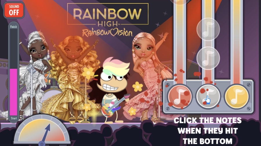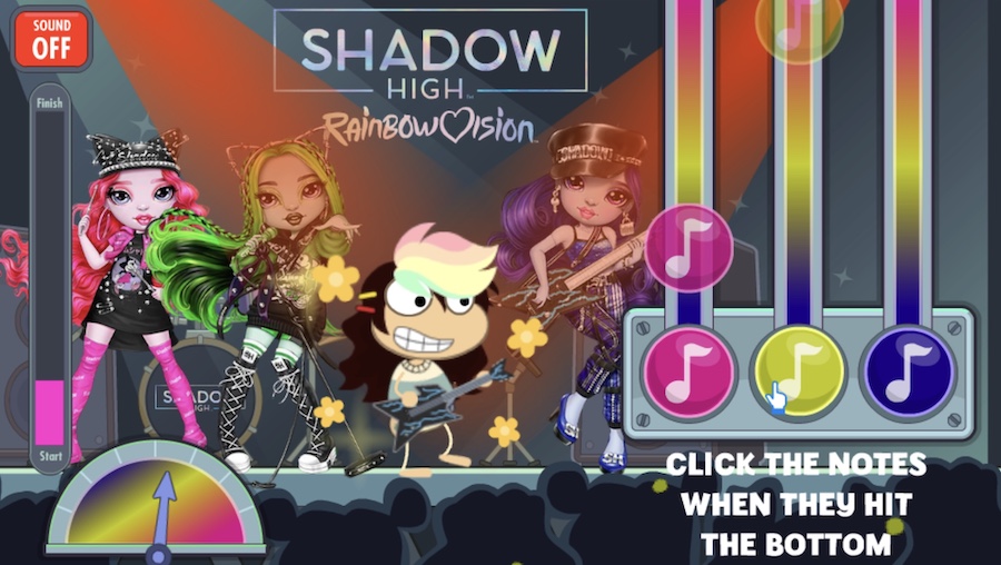Rainbow High is back on Poptropica, but this time instead of a fashion show, the ad for the doll series takes you to the RainbowVision inter-school music competition. You can play for either the Rainbow Divas or the Neon Shadows, but the game is the same: hit the notes when they reach the bottom. Sound up for the rock show jams! 🎵🎸