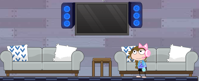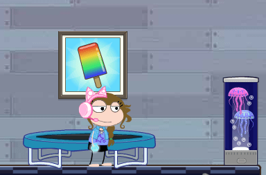 Now this clubhouse is designed as a movie theater and museum. Like many movie theaters, there are concessions, popcorn, soda, and six flavors of ice cream: vanilla, chocolate, strawberry, mint, fudge swirl, and bubblegum. I’ll just get a chocolate ice cream and a purple soda.