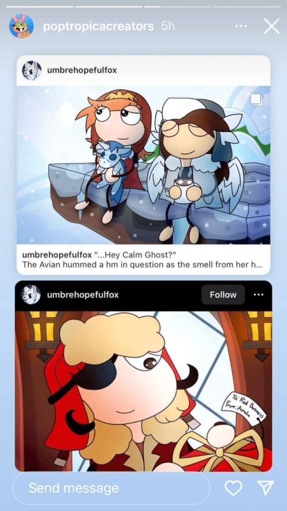 Enjoy the latest fan art features from Poptropica’s Instagram stories, and click on the artists’ names to see more detail in the original posts, including a mini fanfic for how Amelia’s Grapple-Gift was received! ๐