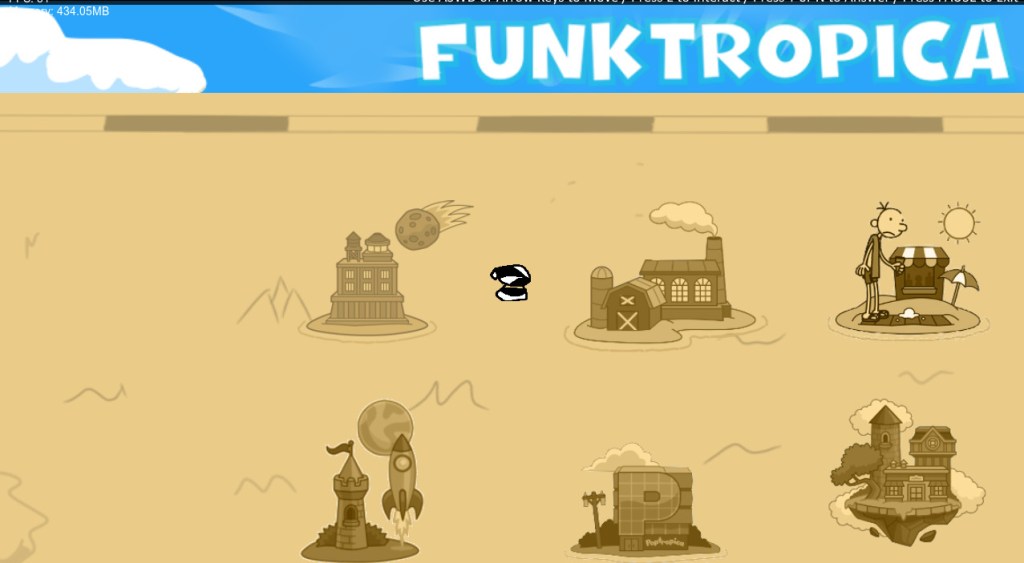 The game’s music consists of several original electronic beats, including a remix of the Poptropica Overture soundtrack in the game menu. There’s even an impressive overworld with an island map taking you to the various scenes in Funktropica!