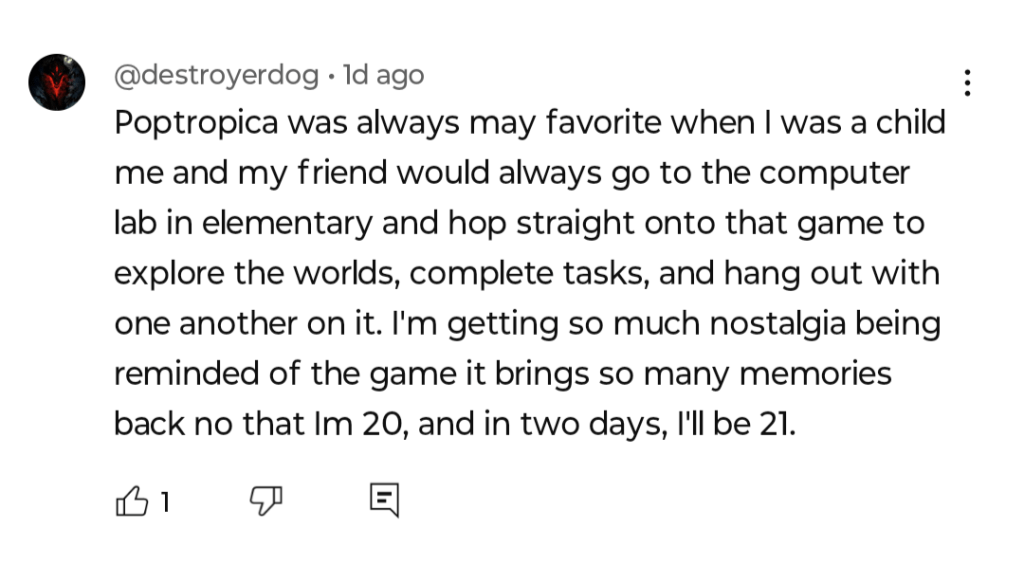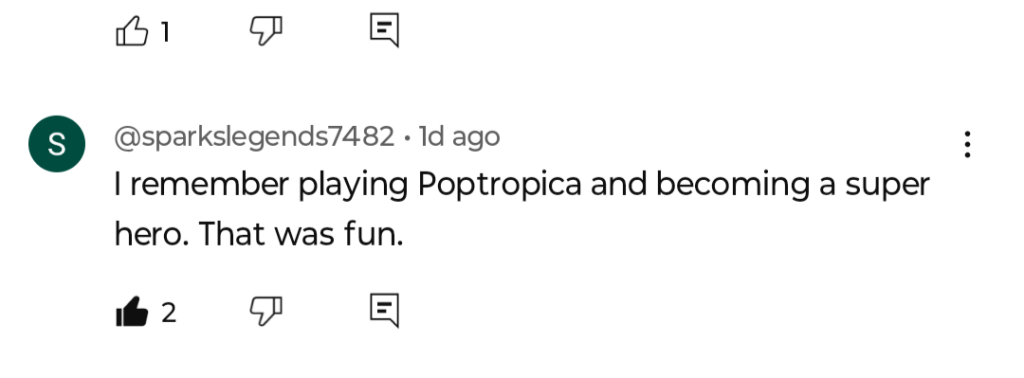 Some people in the post’s comment section have shared their fond memories of Poptropica, and a couple of these comments were liked the The Game Theorists themselves! Here are some of our favorites: