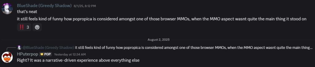 It’s true that Poptropica is a classic in the kids virtual world scene, but does it deserve to be called a true MMO? On our Discord server, the PHC, BlueShade pointed out how Pop is grouped with other browser MMOs despite not primarily being an MMO. Sure, common rooms and friend pages are part of the game, but Pop is better known for its story-rich islands than its multiplayer features. ๐Ÿค”