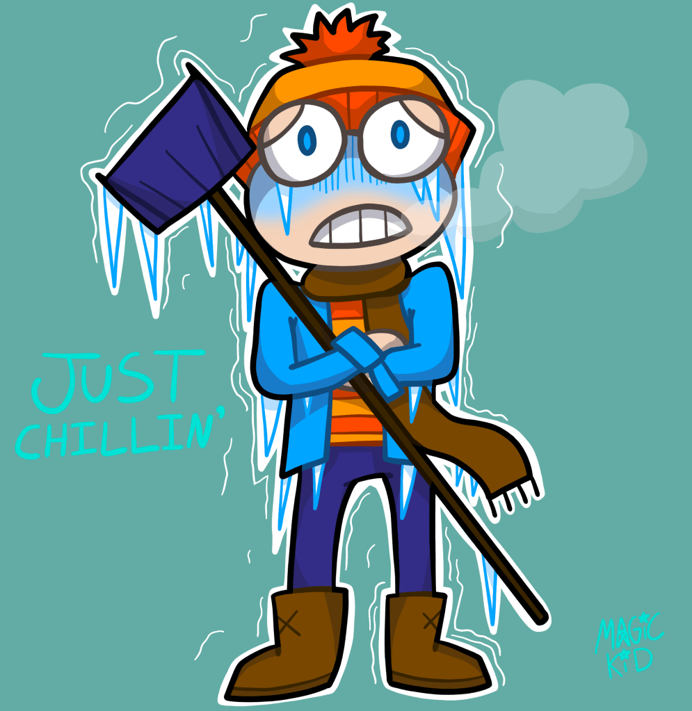 In December 2025, I was so busy with life and touching grass (you should try it sometime, 10/10 recommend it 😝), that I COMPLETELY forgot about my re-draw tradition! Sometime early February 2026, I had some spare time and was looking at old art when rediscovered my evolutions. Instantly, I whipped up this quick addition which remains to be the most recent ‘Just Chillin’ upgrade! 🥶✏️