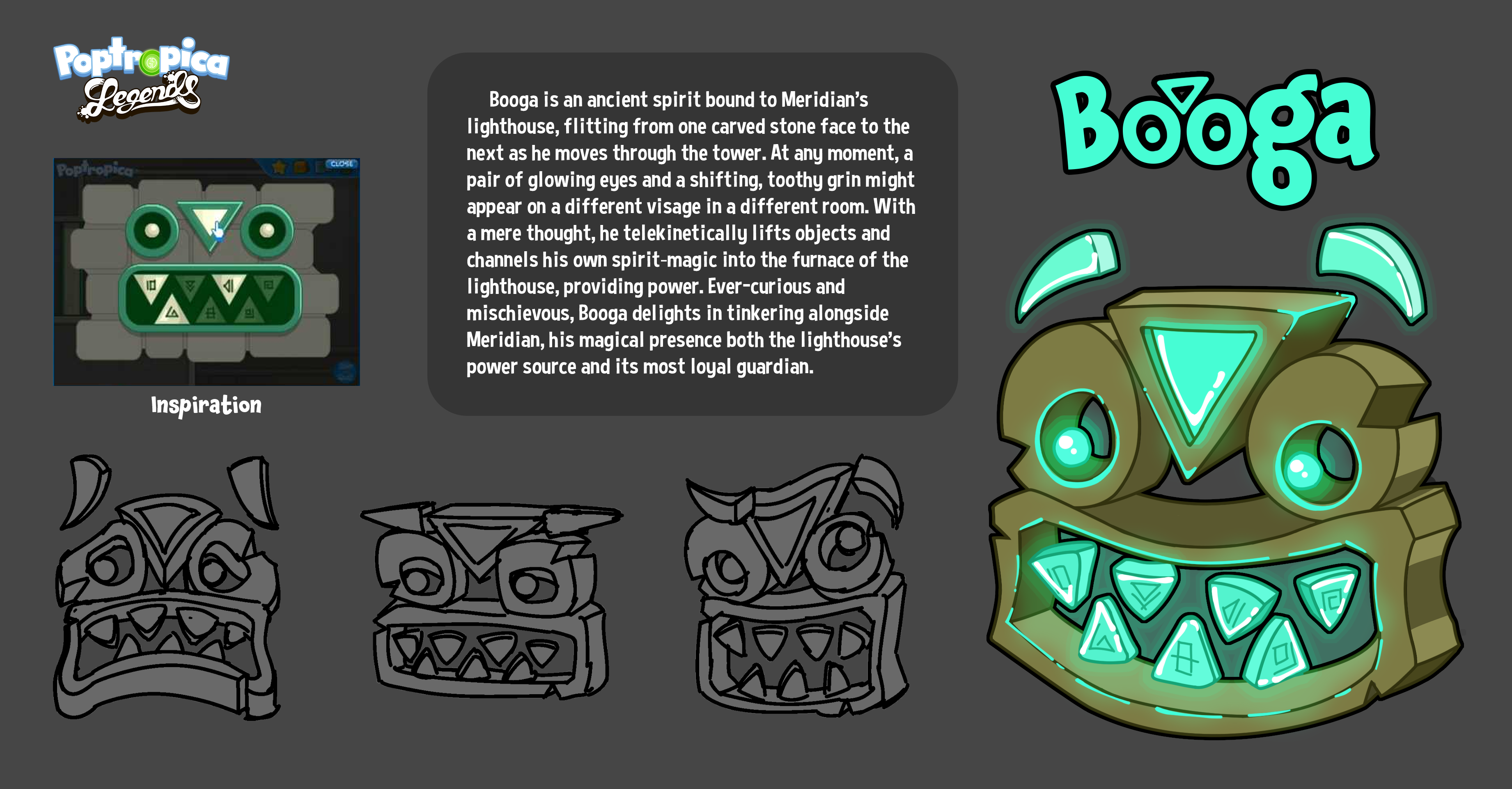 Now, here are a couple of new faces joining the story: an ancient spirit named Booga, who is inspired by the Shark Tooth Island temple keypad, and two organizations called the Bureau of Heroic Poptropicans(BHP) and the Poptropica Espionage Network(PEN) . Hmm, that BHP sounds a little familiar… ๐ค