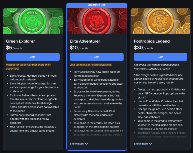 Specifically, I’d like to thank Poptropica Legends Lucky Joker and HoneyBee for their continued monetary support โ you guys were here at the very beginning! This generosity will not be forgotten.