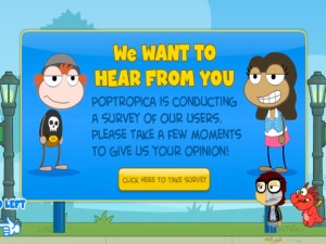 EL: Well, I took the new Poptropica survey on transition street. The one with the minor ads. I love the gallbladder – oh, um it’s a survey asking you about the Daily Pop. Go take it! And on a final note…