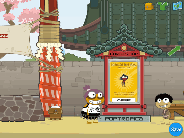 We’re hearing that Poptropica toysare starting to show up on the shelves of Toys “R” Us stores all over the place! Hopefully you’ve had a chance to check them out in person. But you may be wondering how to use the code that comes with each toy, which gives your Poptropican cool new powers and costumes.First, make sure you’re logged into your saved game. If you don’t yet have a saved game, create a new character, press the round “save” button, and create a username and password. Make sure to keep the username and password safe!