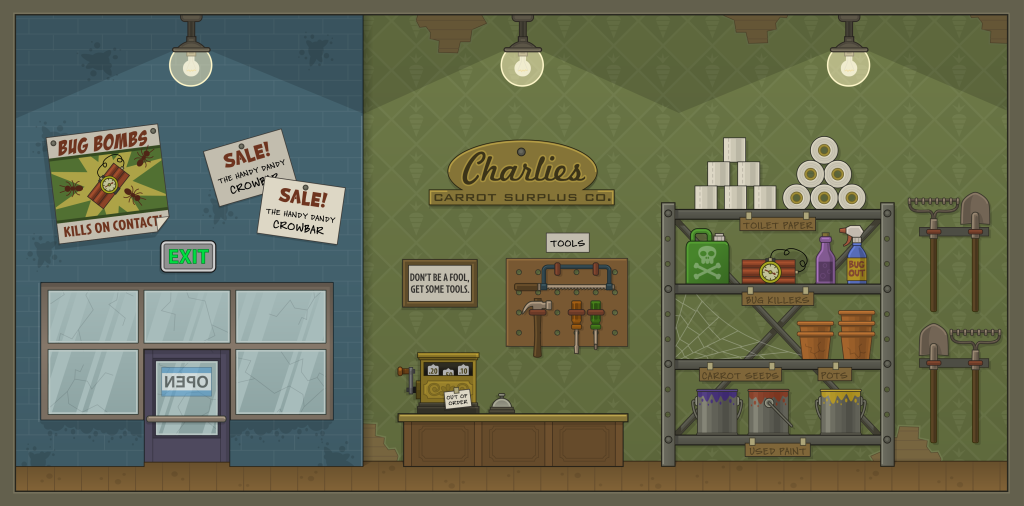 Guide Whiskers back to Main Street and into the tool store, Charlie’s Carrot Surplus Co. Return Whiskers to Charlie, and Charlie will give you a Crowbar.