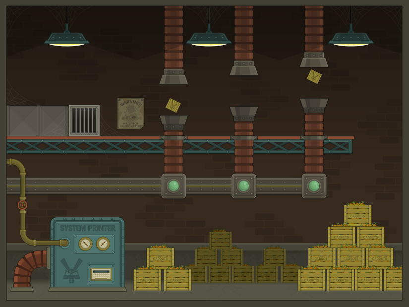 • The original 24 Carrot had an extra Printer Room in the factory, but this was combined with the Processing Room in the 2020 re-release of the island to Poptropica’s Haxe build. The Printer Room can still be seen on the vent blueprint.