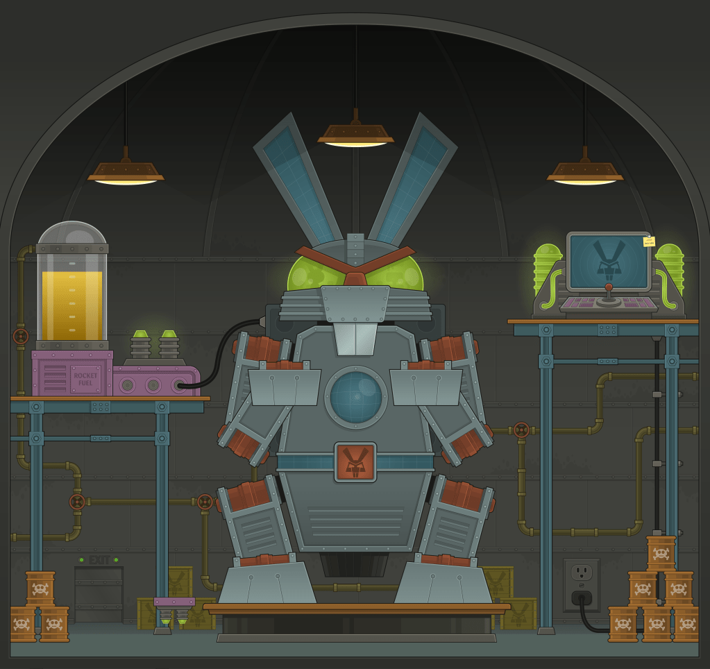 Click on the computer to use it. Using the purple keyboard, enter the password: “fuzzybunny”, then press the enter key. Next, enter the command: “launch rabbot” (be sure to use the space key in between words). Then, the rabbot will begin its launch into outer space!