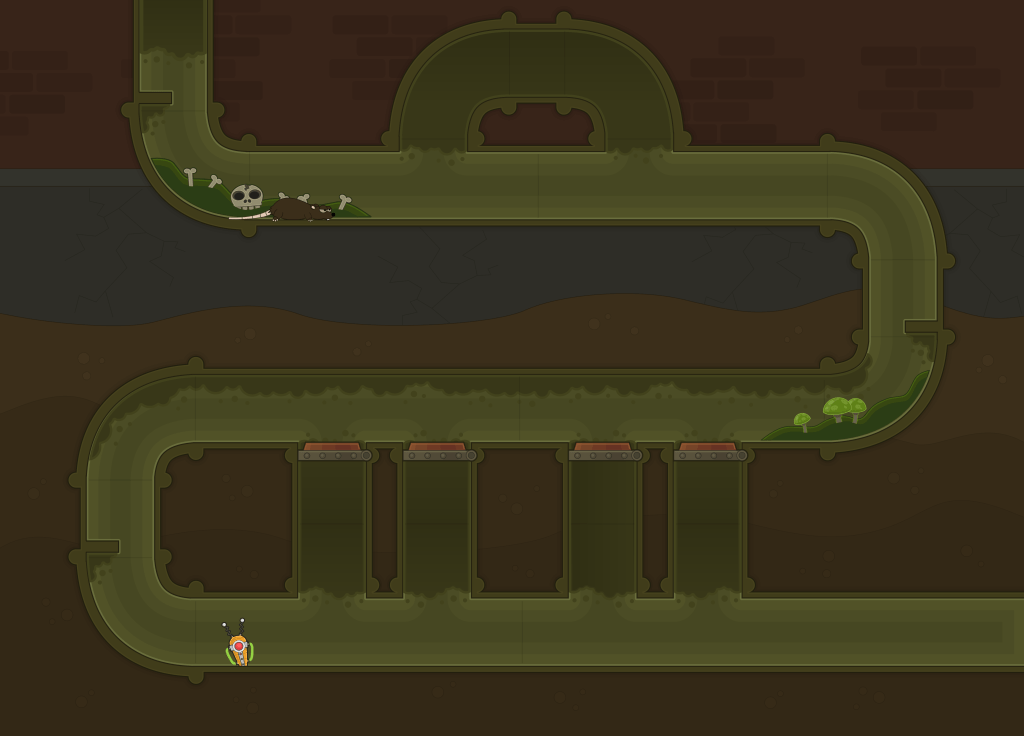 Head left and jump on the small ledge above you, and onto the right platform. Run across the red trapdoors when they form a path. If you fall, just keep trying! Avoid the big rat by using using the extra pipe above you. At the end, go up.