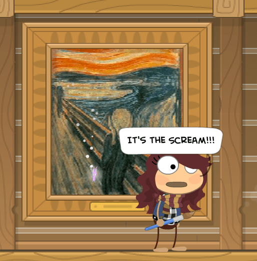 You should see a corner of the painting peeling off, so click on that, revealing… The Scream!