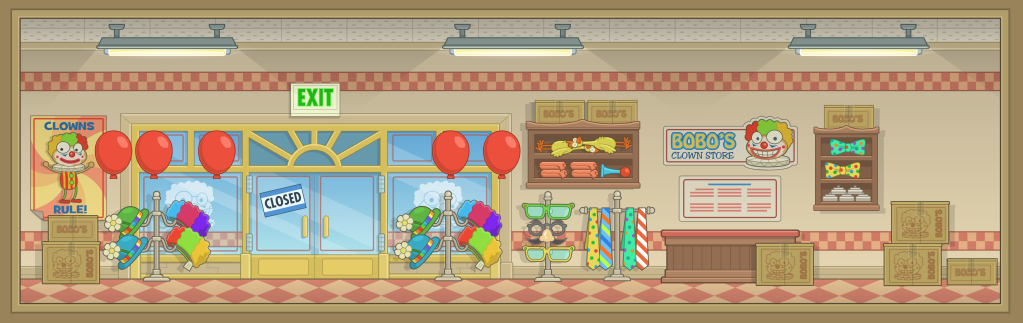 Inside Bobo’s Clown Store, youย can take one balloon (tip: get the green one!).