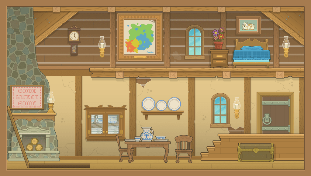 Walk up to the cottage door and use your key.ย Get upย to the second floor, where the painting is.