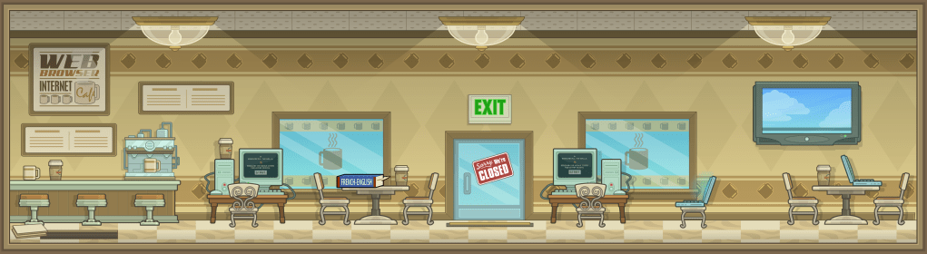 Head all the way left again until you’re back at the Web Browser Cafe. Enter the cafe. On the TV, there will be a new news report about “Balloon Boy.”