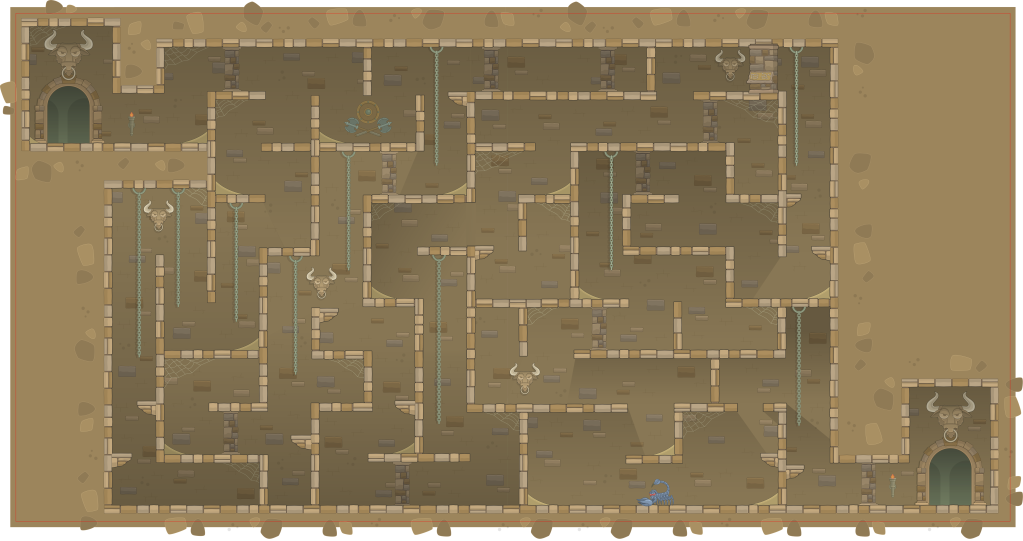 Left of the Sphinx, you’ll find the entrance to the Minotaur’s lair. The door is wide open, so let’s head on in.