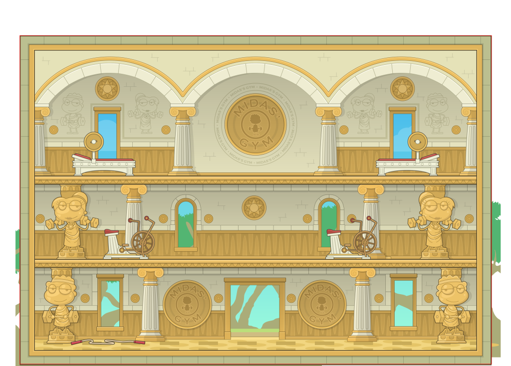 Next, head right until you reach Midas’s Gym, and talk to Aphrodite to get the Touchscreen Mirror. Keep going right to the Grove of Temples.