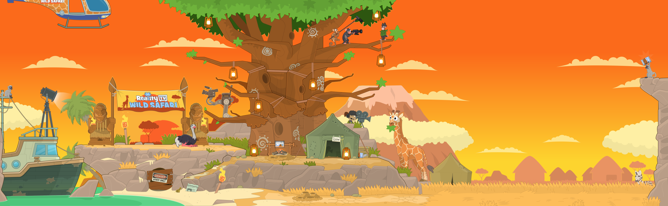 Welcome to Reality TV: Wild Safari Island! Reality TV first aired on Poptropica in 2010, and now it’s back for a spinoff series in a wild safari. Get ready to throw spears, dive with jellyfish, and run from cheetahs!
