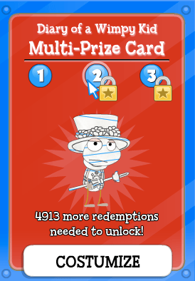 As you can see, only the first prize (a paper costume) is available for now. When enough people redeem the code on Poptropica, we’ll get the second and third prizes unlocked, so hurry and get yours now! 😀