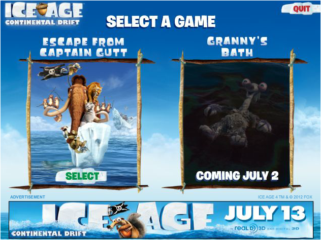 The page says “Select A Game”, when it should say “Select The Game”, cause the game called Granny’s Bath isn’t available for you to play until July 2nd.  Which is fine by me; Granny’s Bath doesn’t sound like a very…appealing game anyway.