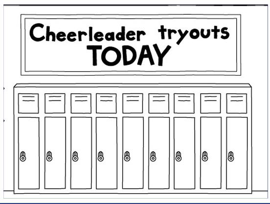 Yep, there are cheerleaders hiding inside the lockers, ready to leap out and cheer the new cheer. Or the lockers are revolving doors that lead the cheerleaders into the tryouts. Or………….. *suspense*…………….. it’s a school! *SCREAM!!!*