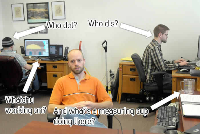 5 – Now, go down down down. Below the entrance. Below the thing with more lasers. And ride another platform down where you have to hide behind another box from a weird person with an afro. A little farther over from you it the blue card slot. Now, ride the platform up again above the thing with lasers, and go to the edge. There should be a box at the end. Push the box off the end and it will smash on the ground near/on the blue switch. Push it onto it if it isn’t already on it. If you push it off the end like I did the first time, you’re dead and you need to start over. Now if it is on it, yaeeeey for you and run over on top of the other platforms with the lasers, onto the moving platform, into the room with the blue card, then you grab the blue card, scream with joy, ride the floating platform back up again, go out through the entrance… you get the main idea.