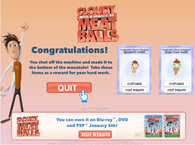 Now you win two costumes, as shown above: the Spaghetti Outfit, and the Sugar Cone Outfit! Yum.. 😀