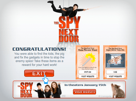 Bob needs help babysitting and keeping the kids and their pet pig (aww… cute wittle piggy… :3) safe from the spies. Now, what spy would be mean enough to harm a cute little pig? D:< After he tells you that, a screen should pop up telling you to stop the enemy spies! You only have a short time to find the children, find the cute pig, and fix the defenses before the spies arrive. You have to click and hold on gadgets to fill their repair gauge. One the gauge is full, the gadget will be fixed!