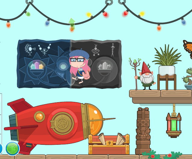 The third floor hosts a large collection of Pop memorabilia from my journeys. A mini Poptropica blimp, figures of friends and foes, a big red rocket ship, a Goofball mural, and some Grapple-Pap decorations, just to name a few. ๐๐
