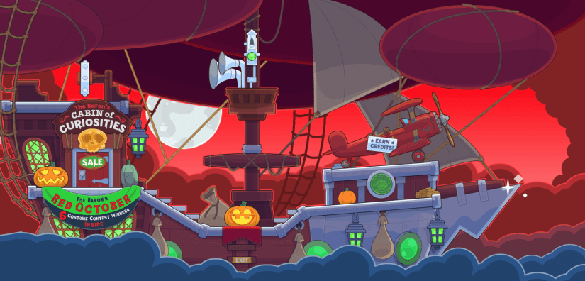 By the way, while Ack is nowhere to be seen, you can still earn credits by playing the Clear the Skies mini-game on the airship, which has been refreshed with a new skin to match the Red October mood!
